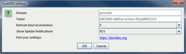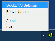 right click on the tray and choose DuckDNS Settings you should now see the settings screenon this screen you must change your token and domain to be the one you want to update