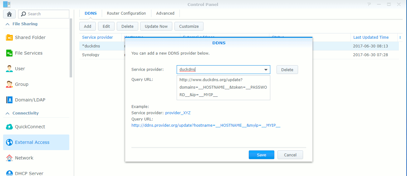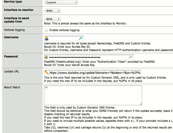 duckdns http://www.duckdns.org/update?domains=__HOSTNAME__&token=__PASSWORD__&ip=__MYIP__here is what the section looks like in the web interface (make sure you follow the steps above)