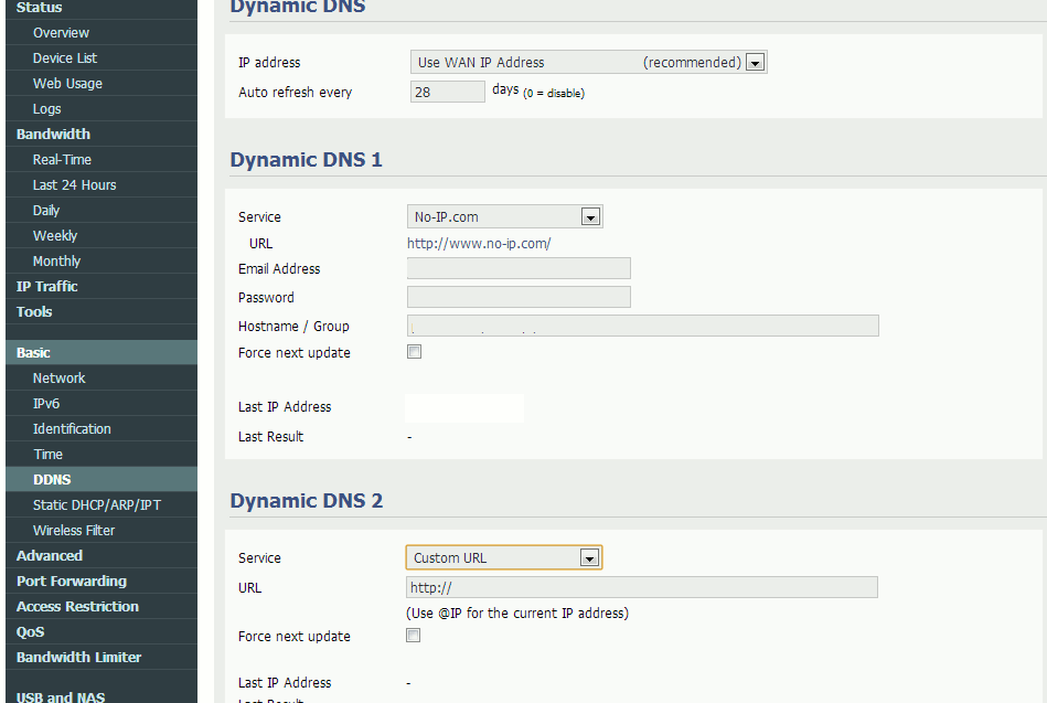 user: NA password: anything as long as its not blank service: custom host: www.duckdns.orgthe routers dyndns settings page looks like the one below