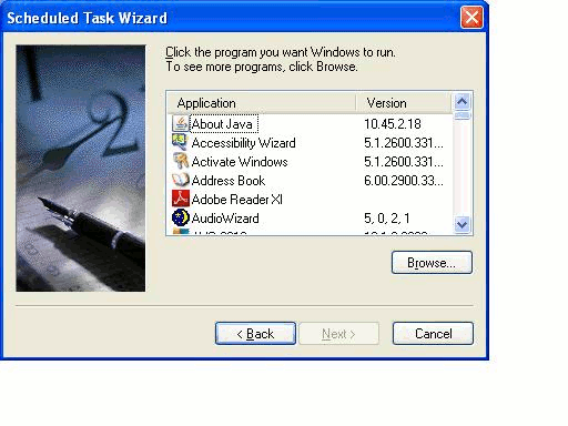 Click Start, go to Control Panel and open 'Schedule Tasks'. Select Add a new Task from the top of the window.